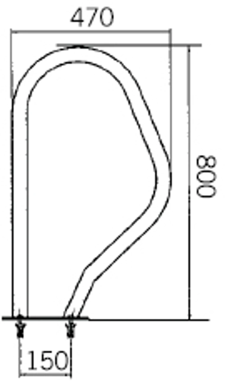 470 x 800mm Swimming Pool Grab Rails (with Rectangular Base) Dimensions