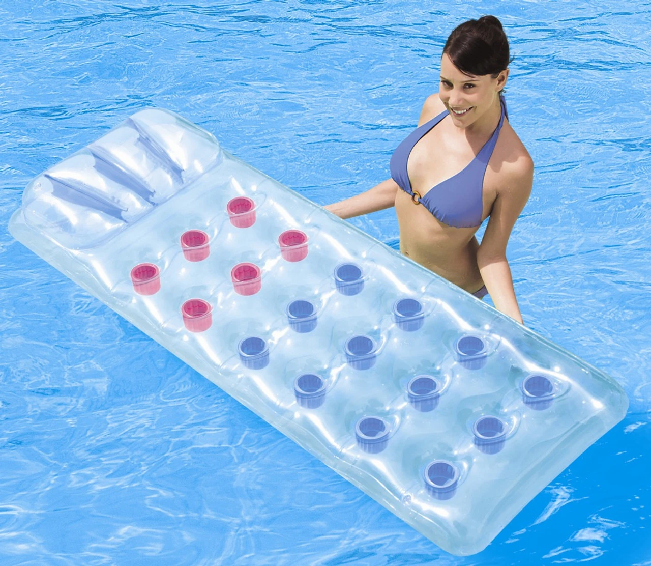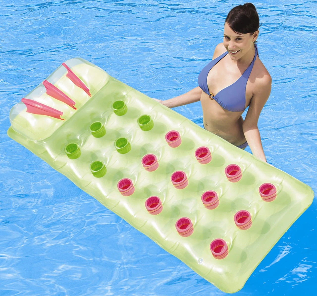 18 Pocket swimming pool lounger available in green, pearl and yellow, bright coloured pool lilo. Size 188 x 71cm