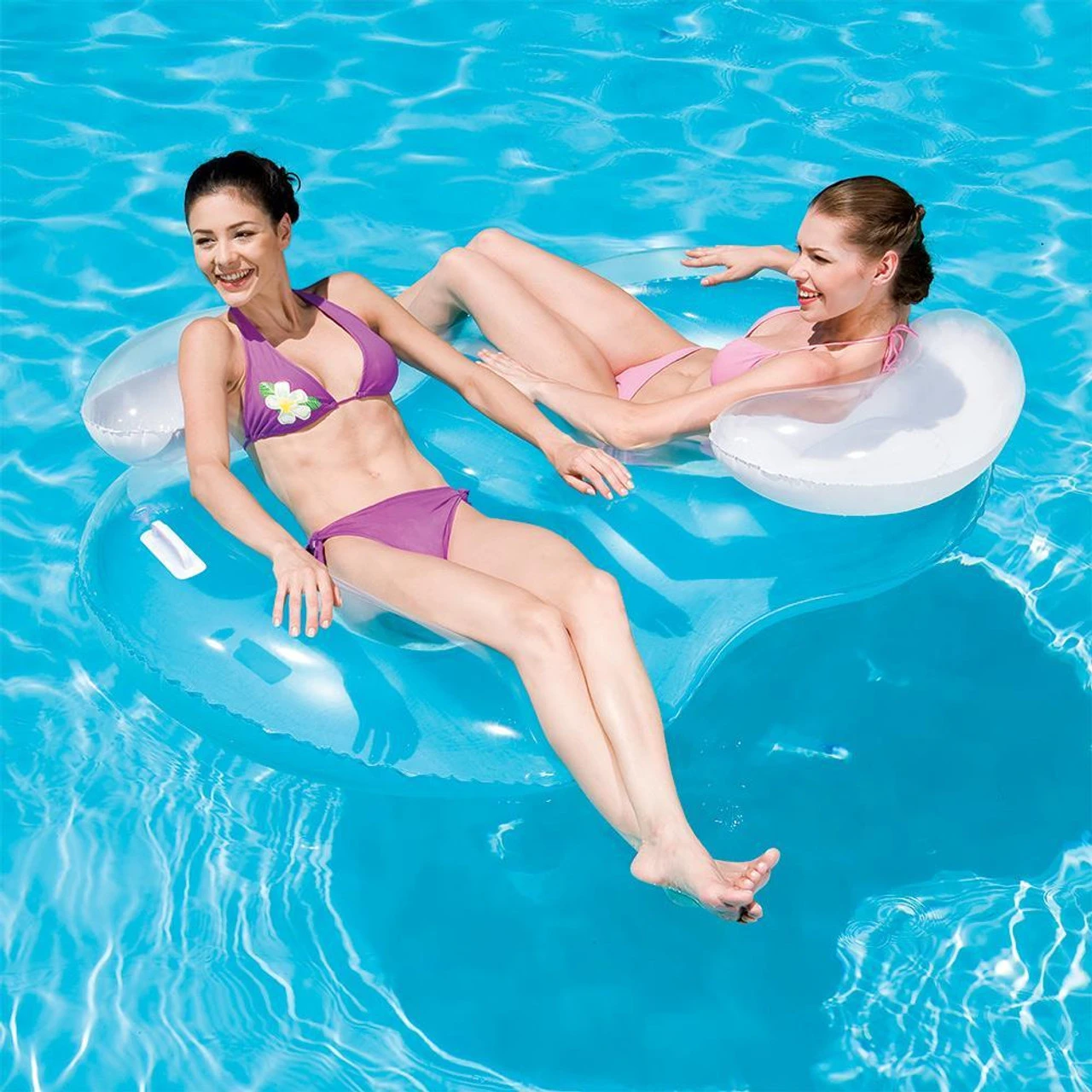 With Pillow arm and back rests, heavy duty handles and an ample seating area, the Two Person Double Inflatable Swimming Pool Ring is designed for total comfort for two.