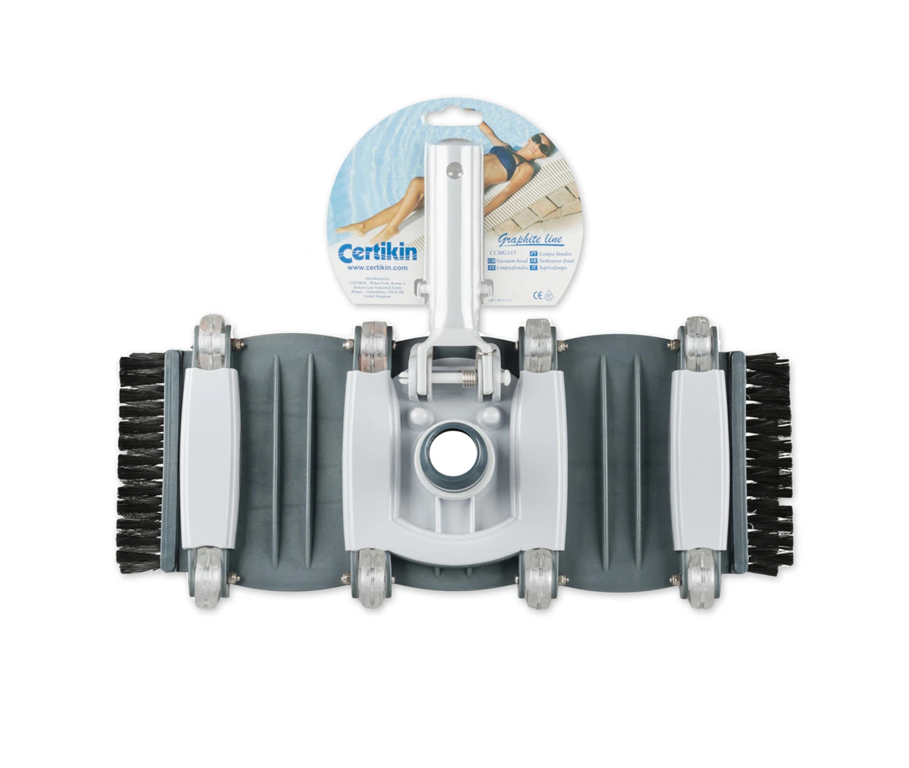 - Certikin’s deluxe hoover head features side brushes enabling easier cleaning of the floor to wall joint and it is flexible enough to go around corners to get into those important difficult to reach areas. Side brushes aid removal of stubborn dirt or algae.