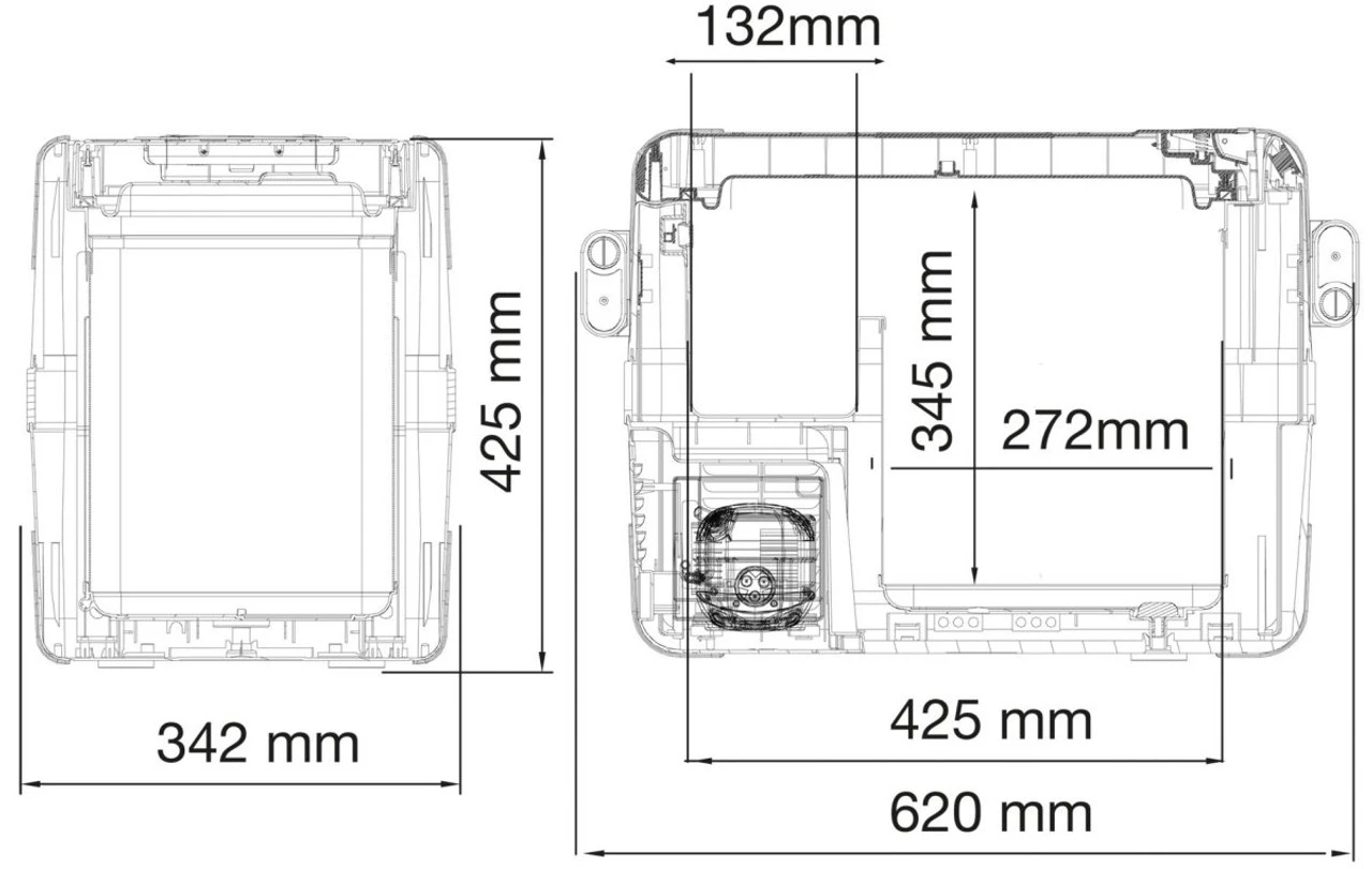 - Dimensions: 620 x 425 x 342 (D x H x W mm)