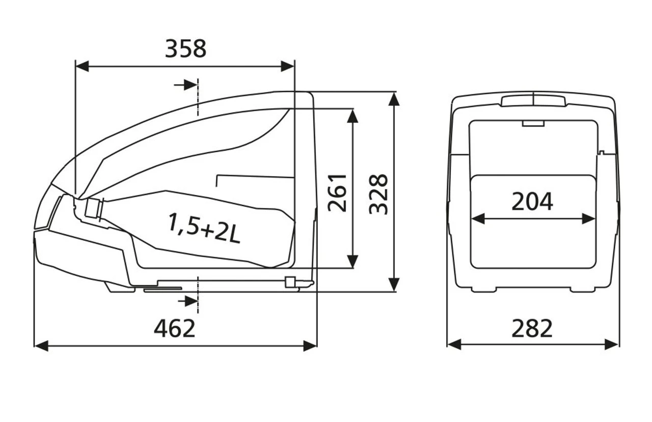- H238 x W282 x D462 mm