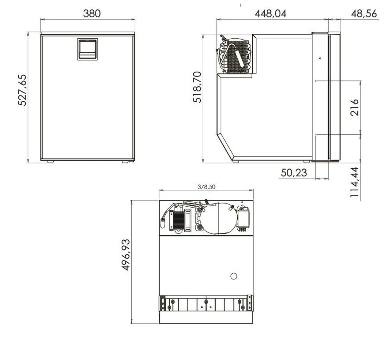 | Vitrifrico C51i Compressor fridge | 532mm | Â 380mm | Â 459mm (Flush 501mm) |